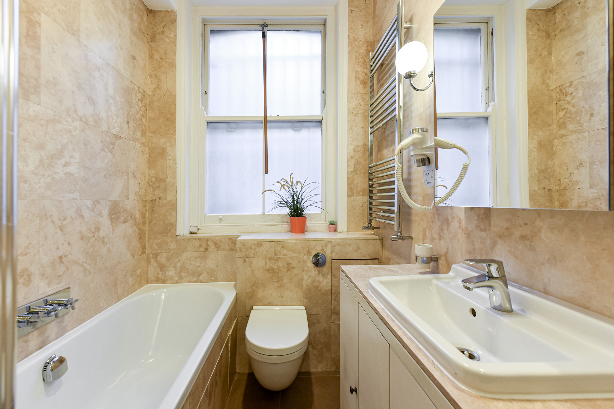 Arranged over the lower ground floor of a residential apartment block, you're welcomed into a bright, thoughtfully arranged living and dining area designed for relaxation. The fully equipped kitchen caters to all culinary needs, while the property’s standout feature—a charming private garden—is the ideal outdoor space for morning coffees and unwinding. The main bedroom boasts two UK single beds (3ft wide) with a zip-and-link mattress that can be configured as a UK super king-sized bed (6ft wide). The second bedroom offers a small UK double bed (4ft wide), and the third bedroom is furnished with a standard UK double bed (4.5ft wide). Two bathrooms serve the home, one with a shower stall and another with a shower-over-bath.