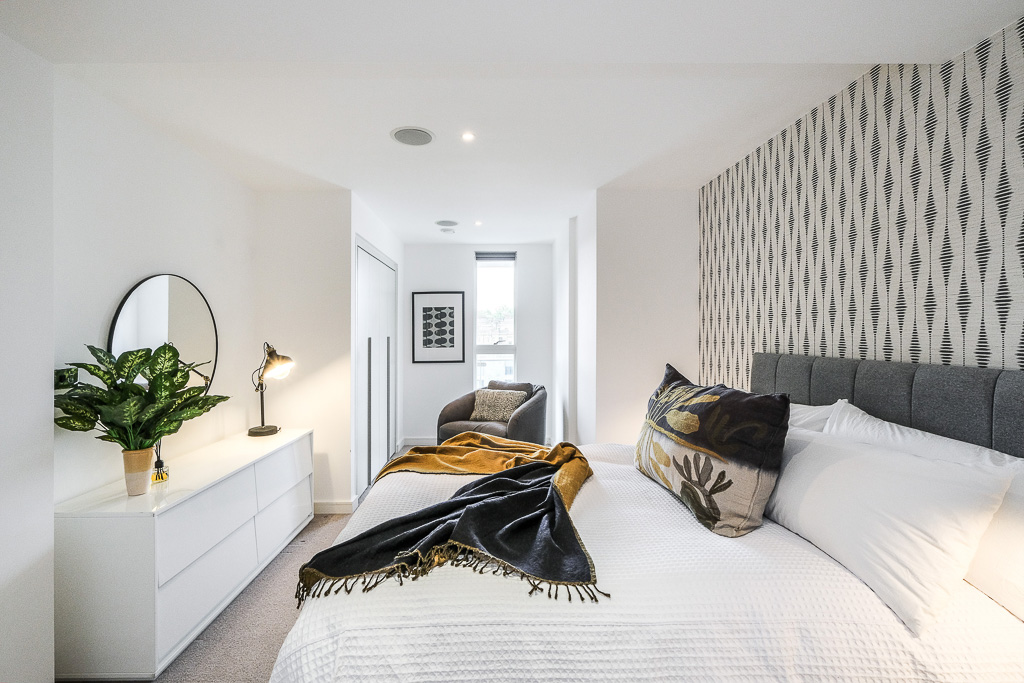 This stylish apartment offers approximately 770 square feet of contemporary living space. The bright, open-plan living area is perfect for relaxation and entertaining, seamlessly connecting to a private balcony that extends your outdoor living space. The property features two well-appointed bedrooms. The master bedroom, with a UK super king-sized bed (6ft wide), includes an en-suite bathroom with a shower over bath, while the second bedroom, with a UK double bed (4ft wide), is spacious and provides easy access to a separate, modern shower room with high-quality fixtures.