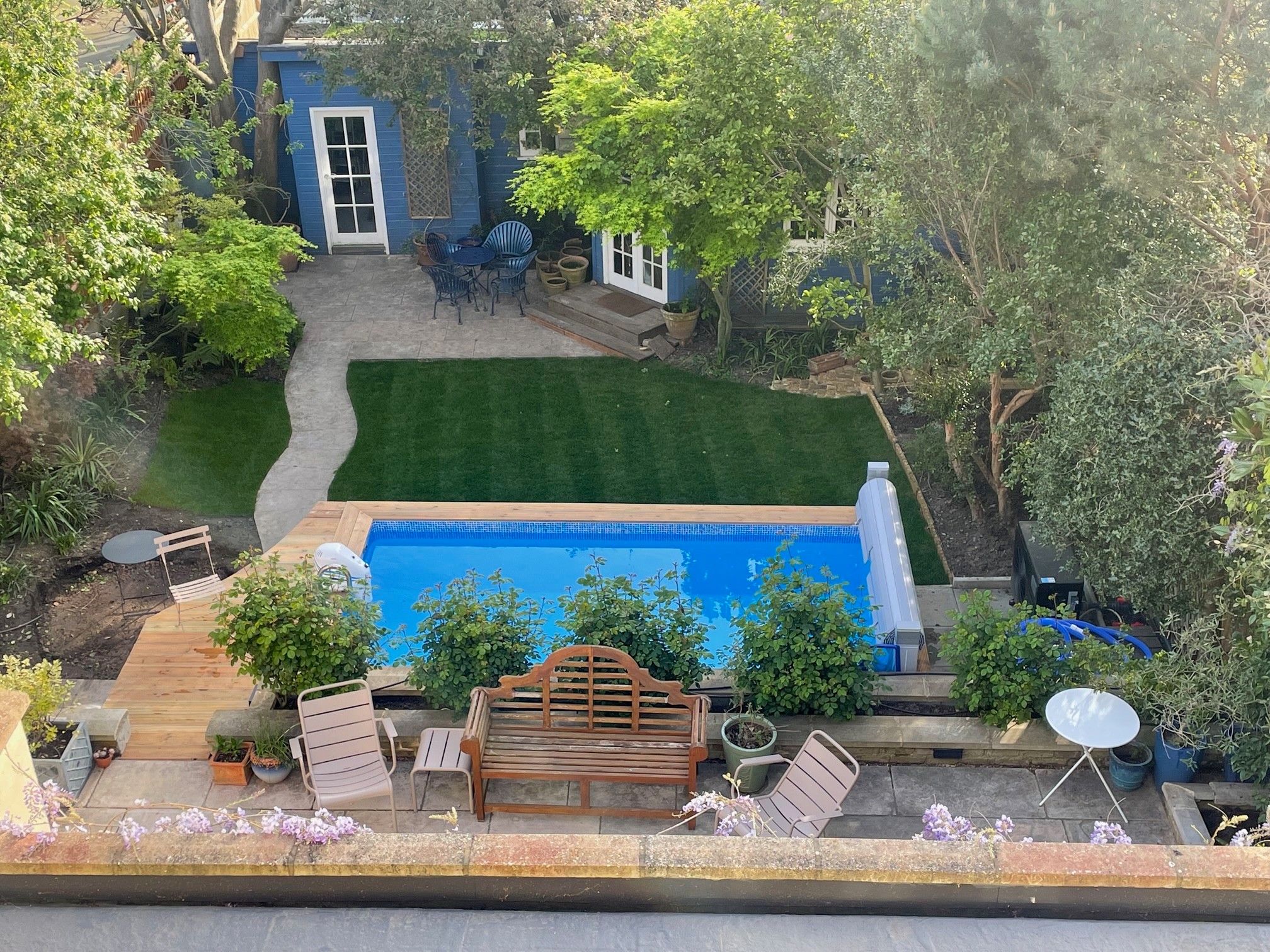 You're welcomed into a spacious open-plan living and dining area that seamlessly connects to a fully equipped kitchen, all bathed in natural light from large skylights. Designed for effortless indoor-outdoor entertaining, this space extends to a generous patio overlooking a lush garden and a rare feature for London: a swimming pool with an exercise jet and a hard safety cover. A cosy second living room and a convenient guest WC complete the ground floor, while three comfortable bedrooms await on the upper floors. The master bedroom features a UK super king-sized bed (6ft wide), enjoys terrace views, and is served by an en-suite bathroom with both a shower and bathtub. The second bedroom also offers a UK super king-sized bed (6ft wide) that can be configured into twin single beds and is complemented by a bathroom with a striking walk-in shower as well as a separate bathtub. The third bedroom includes a UK double bed (4.5ft wide) and is served by a separate bathroom with a shower-over-bath.