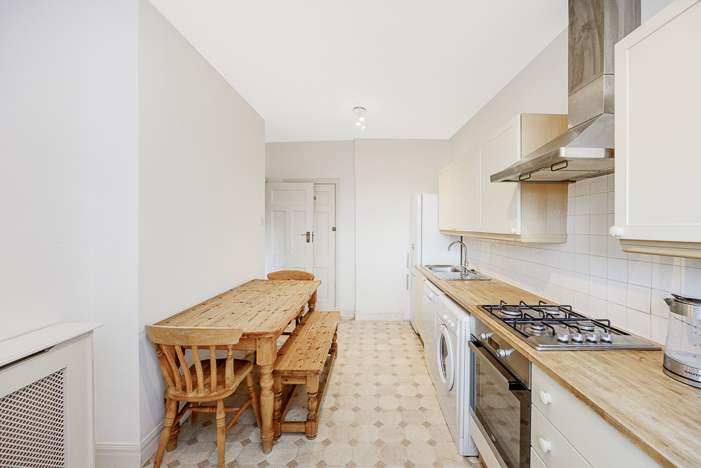 The kitchen is well laid out and fully equipped, with ample worktop space and a dining table for easy meals at home. Whether preparing breakfast before heading out or enjoying a quiet supper in, it offers everything needed for a seamless stay.