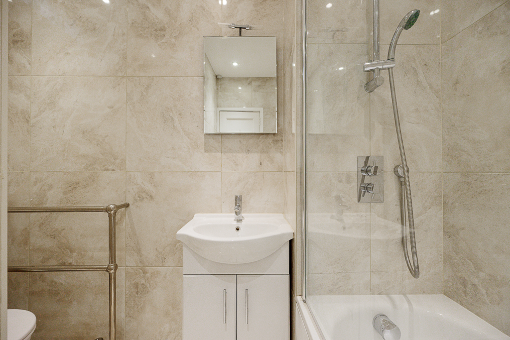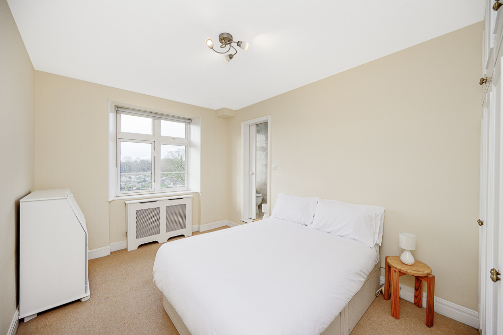 The bedroom is bright and peaceful, featuring a UK double bed (4.5ft wide) and built-in storage. It benefits from an en-suite shower room. In addition, the apartment offers a separate family bathroom with a full-sized bath and overhead shower, providing added flexibility and comfort.