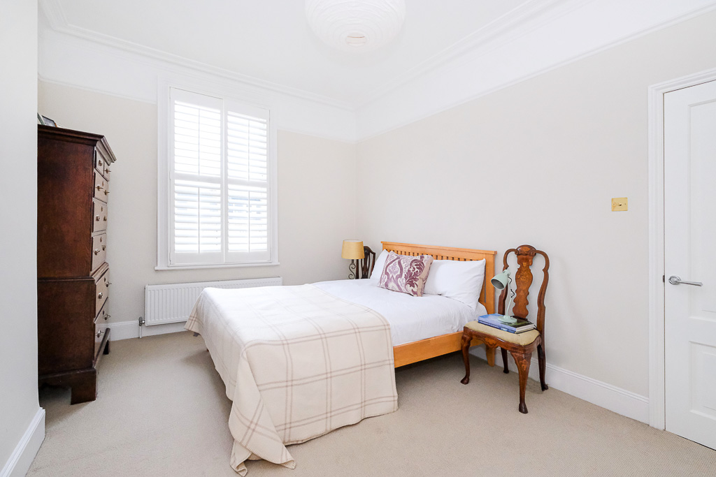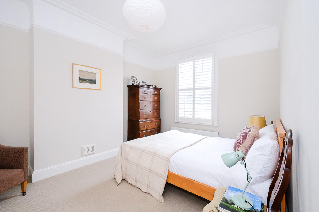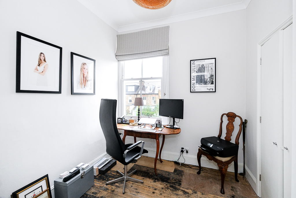 Spanning three floors, this home boasts generously sized rooms and an abundance of natural light. The ground floor offers two reception rooms, the first with a large bay window and a functional fireplace. The second reception seamlessly connects to a dining area, featuring a spacious and brightly lit kitchen – a haven for culinary enthusiasts. The kitchen opens onto a private garden through large sliding double doors, with one side leading to a convenient utility room equipped with a WC. The first floor features the master bedroom with a UK king-sized bed (5ft wide) and an ensuite bathroom featuring both a bath and a shower stall. A second bedroom with a UK king-sized bed (5ft wide), a separate office and a bathroom with a shower stall can be found on the same level. The third-floor houses two bedrooms, each furnished with UK king-sized beds (5ft wide) sharing a bathroom featuring a built-in bath.