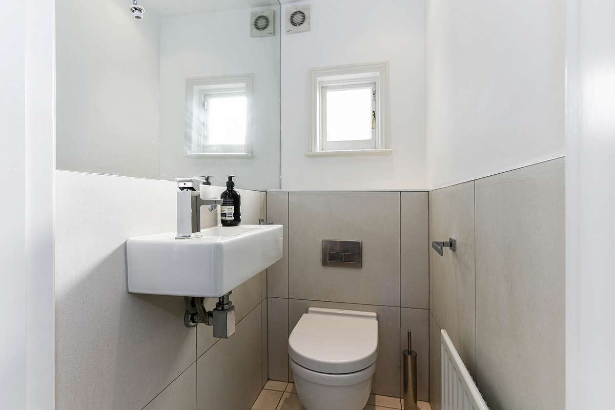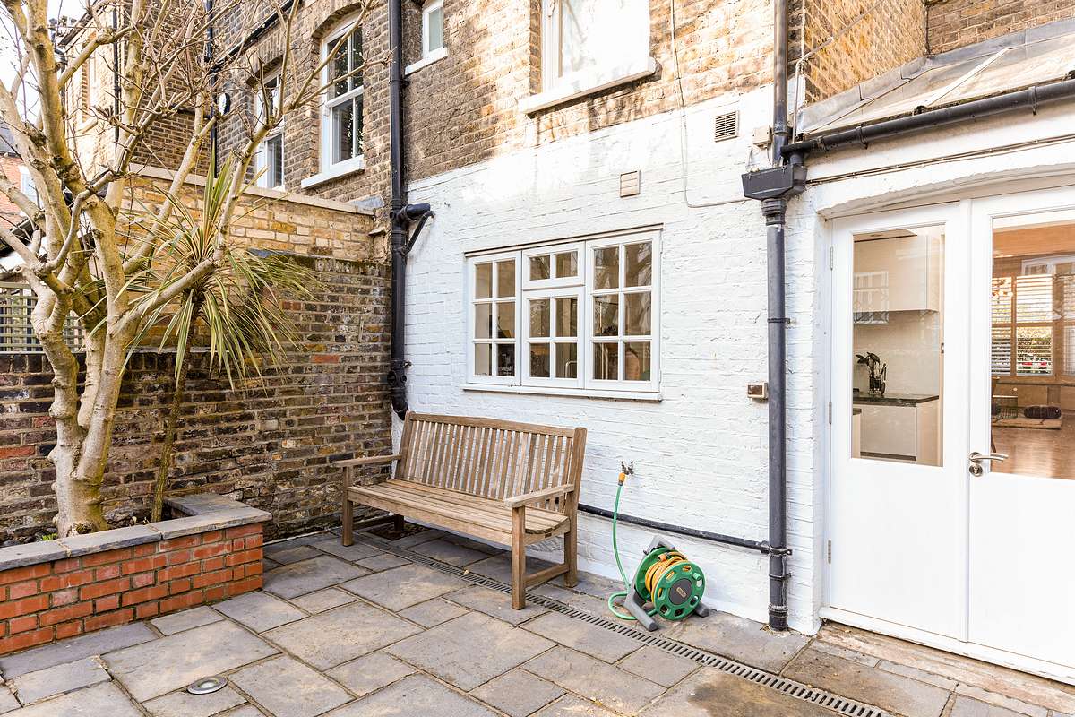 This lovely, terraced period house is arranged over three floors and offers well-proportioned rooms with contemporary finishes while retaining period character. A welcoming living room with ample natural lighting, a large bay window, an impressive feature fireplace, and solid wooden floors. A dining area seating six leads into a modern kitchen with direct access to a South West facing sun terrace. A guest's cloakroom is also located on this level.
