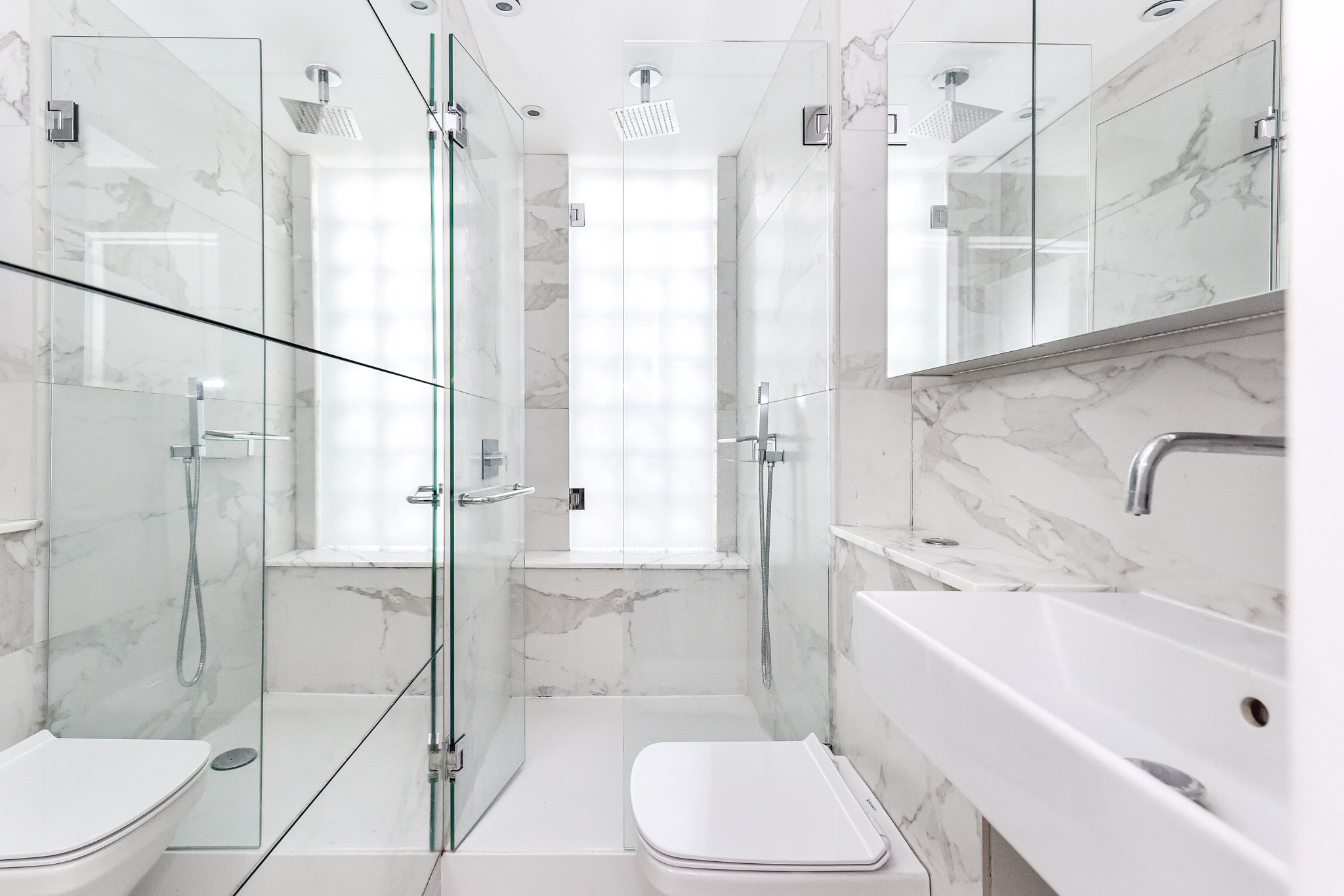 This home is situated on the sixth floor of an apartment block and has elevator access. Upon entry, the apartment is laid out over a single floor with a bright, mirrored hallway leading you to a contemporary living area showered with natural lighting throughout. The fully equipped kitchen offers island-styled seating for three, with the pin-legged leathered stools accentuating the kitchen's backslash. The retro-styled dining area is perfect for hosting dinners and offers seating for six however a stunning bay-window breakfast nook gives you a panoramic view of the neighbourhood and might be more appealing for your morning coffee. The beautiful master bedroom, with a unique Bohemian style rocking chair and light wood furnishings, presents an inviting UK Super king bed (6 ft wide); serviced by an elegant marble and mirrored bathroom with a shower stall. The minimalistic second bedroom offers a UK double bed (4.5 ft wide), serviced by a further marbled and mirrored bathroom with a shower stall.
