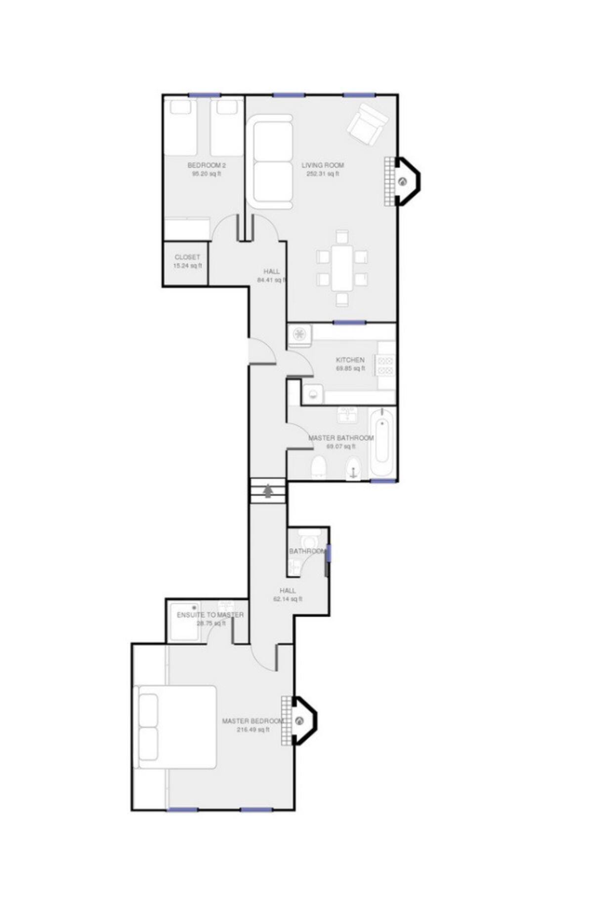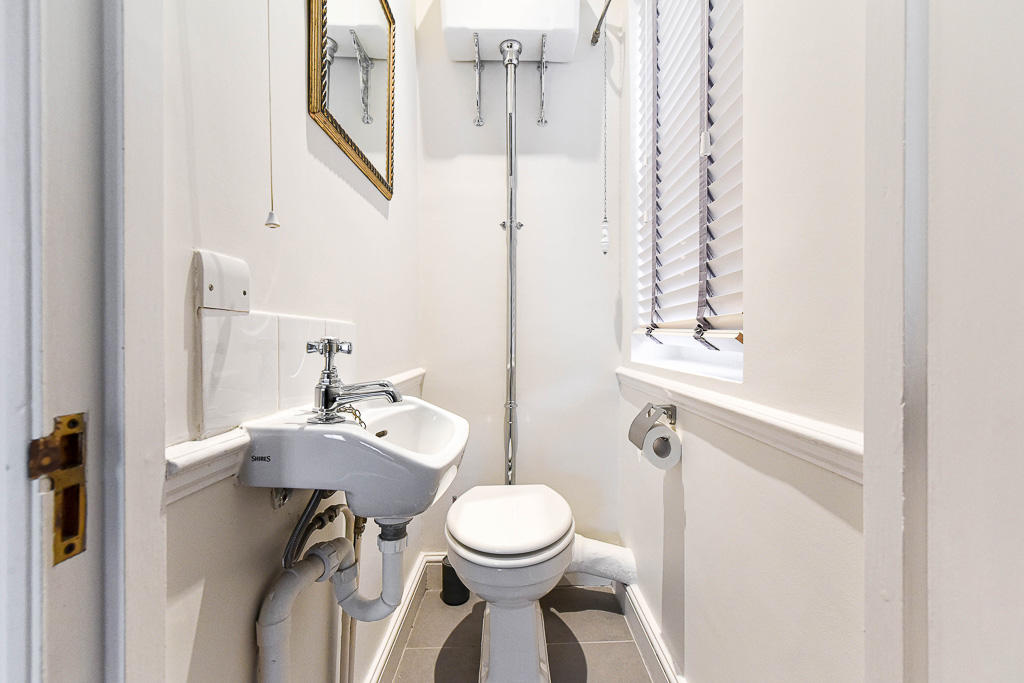Spread across the second floor, enter a stylish reception room adorned with two sash windows and a decorative fireplace, opening into a six-seater dining area. The apartment features a fully fitted kitchen and two bedrooms: the first generously sized bedroom boasts a king-size (5 ft wide) bed with an ensuite shower room, while the second bedroom offers two single beds ( can be zipped together to make a double bed ) serviced by a bathroom with shower over bath. An additional WC is available for guests.