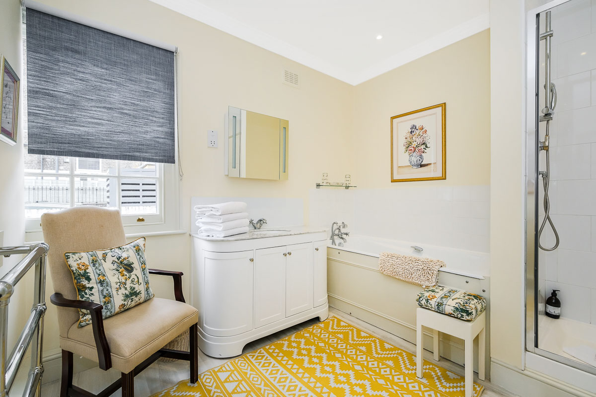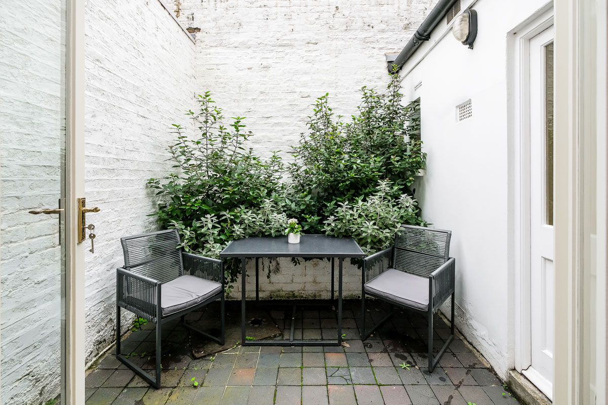 A beautiful wooden dining table (seats six people) endows this London vacation rental with great elegance and even greater charm, whilst the cosy kitchen provides all the necessary requirements. The comfortable sitting room is bright and luminous thanks to the large windows. A small but stylish patio leads out of large French windows directly opposite the dining area and is a wonderful spot for early morning coffee al fresco. You’ll also find a utility room, along with a W.C.