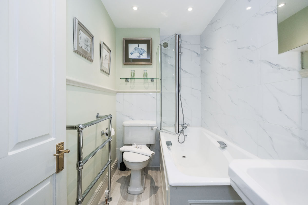 Set over three floors, you will feel utterly at ease in this splendid home. On the first floor, you will be welcomed by a luxurious master bedroom, complete with a super king-sized bed (6ft wide). A bath and hand-held shower, en-suite to the master bedroom, complement this lovely room. On the top floor, you’ll find two beautifully thought-out rooms; one with a king-sized bed (5ft wide), and the other with a single bed. There is also a family bathroom on this floor, with W.C., a washbasin, and a bath.
