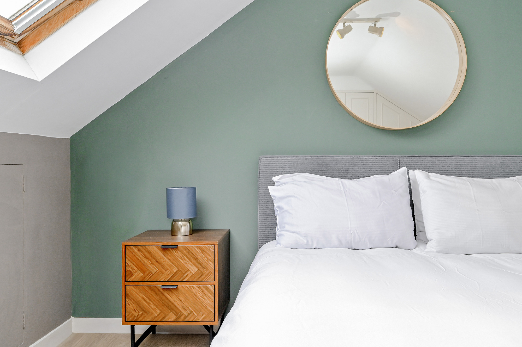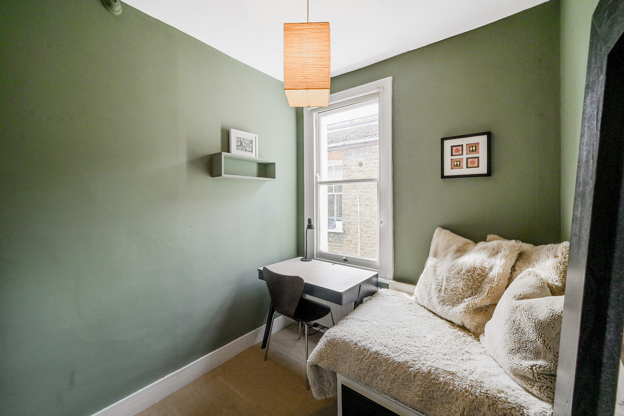 Set across two floors, this first-floor apartment is perfect for families or groups. The first floor features a large, fully equipped kitchen and dining area, as well as a small office that can be used as a third bedroom with a sofa bed convertible into a small double. The raised first floor offers a spacious living room, a secondary bedroom with a UK double bed (4.5 ft wide), and a bathroom with a shower over the bath. The master bedroom on the second floor has a UK king-size bed (5 ft wide), and the home has access to a lush private garden with a BBQ—ideal for alfresco dining or relaxing after a day in the city.