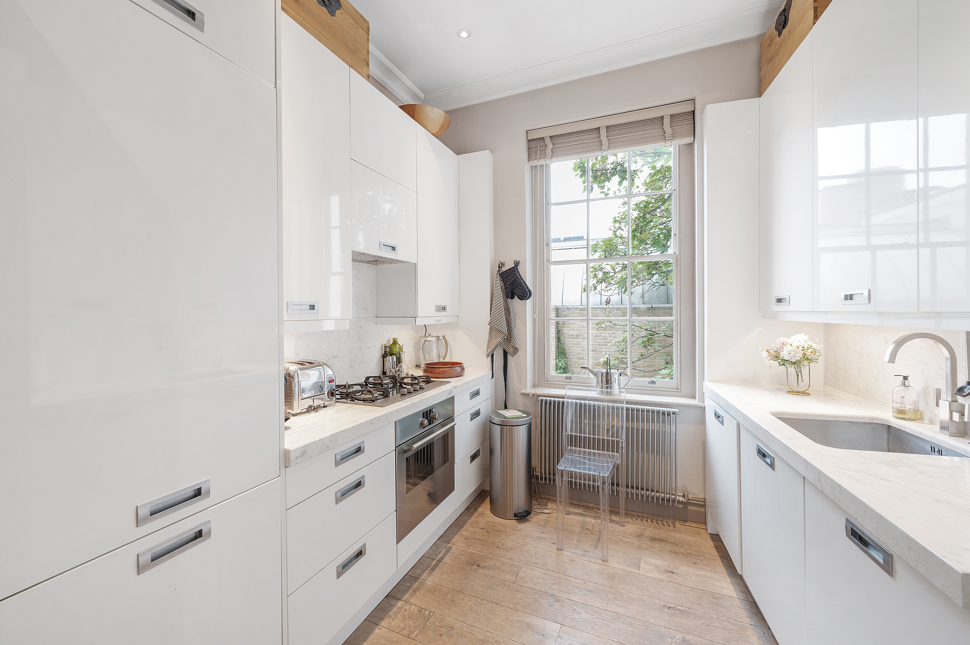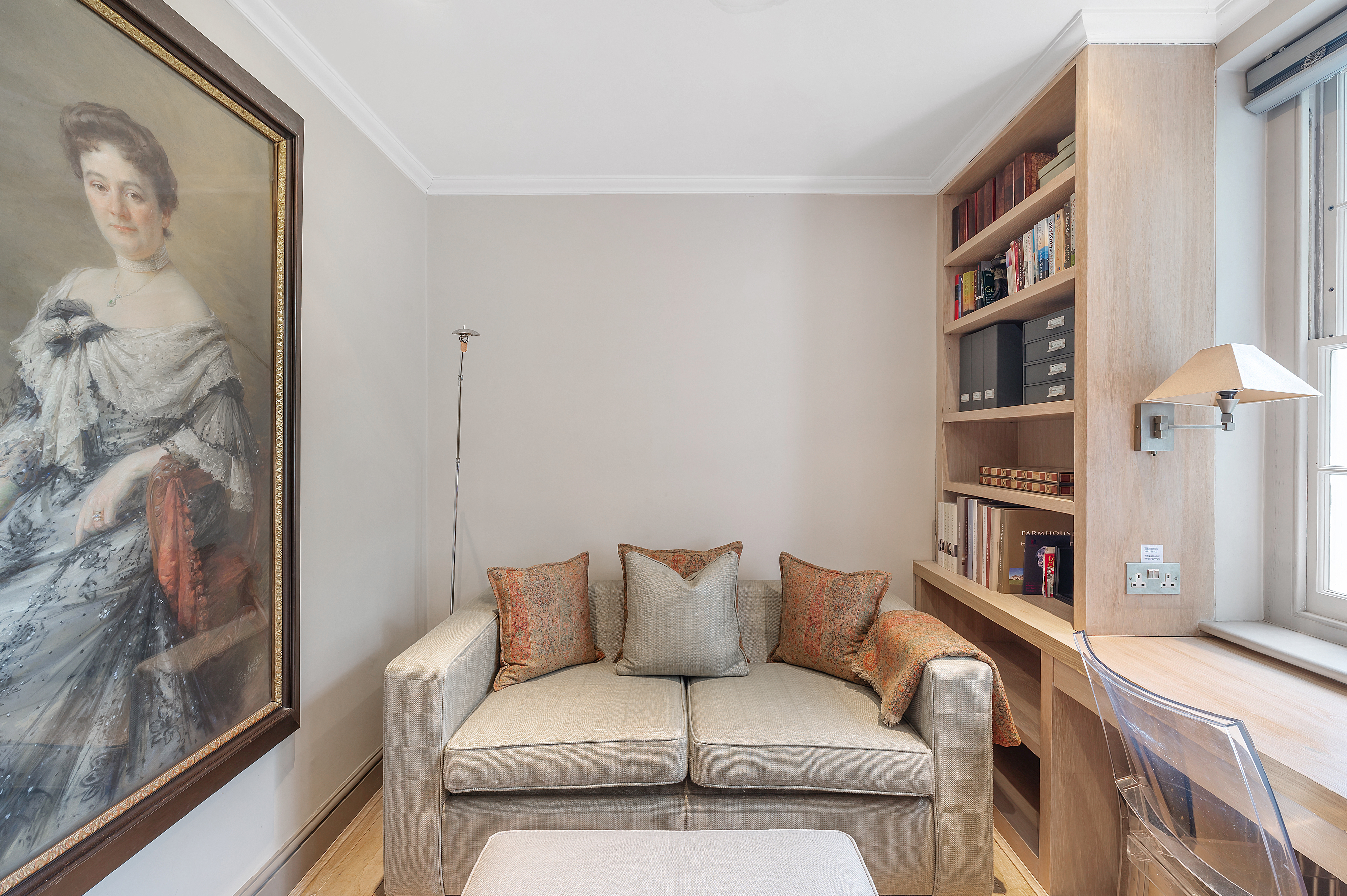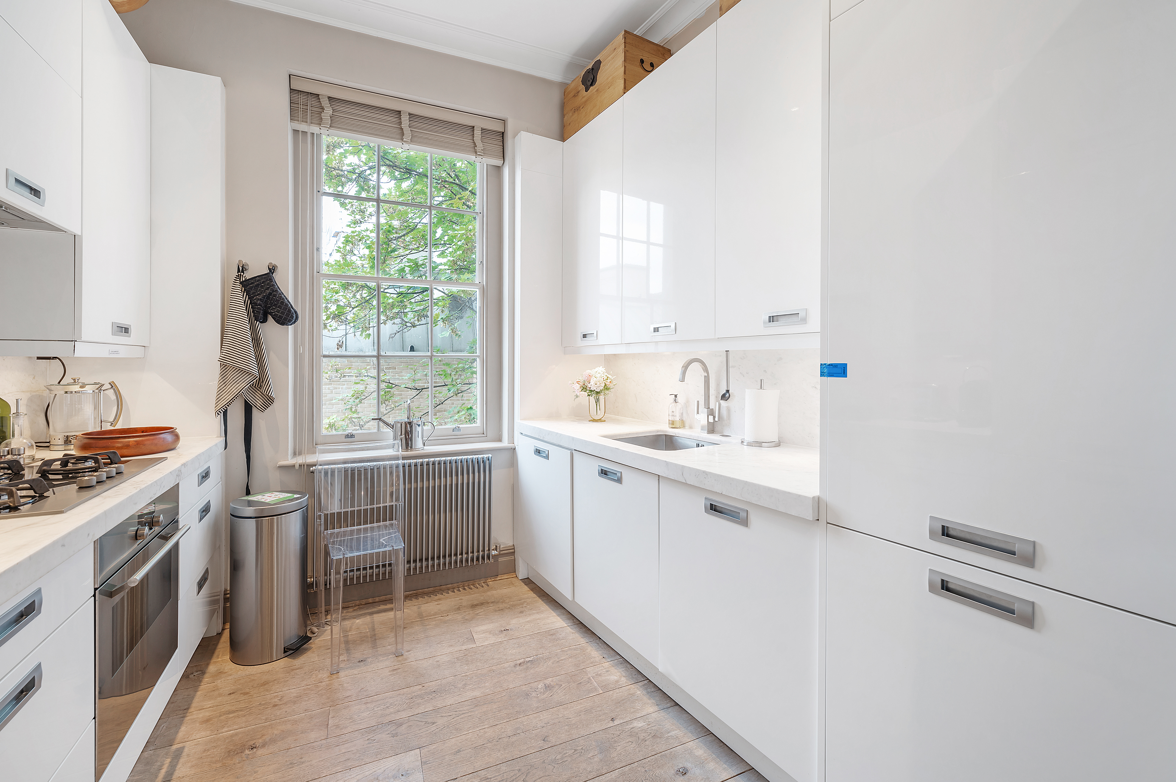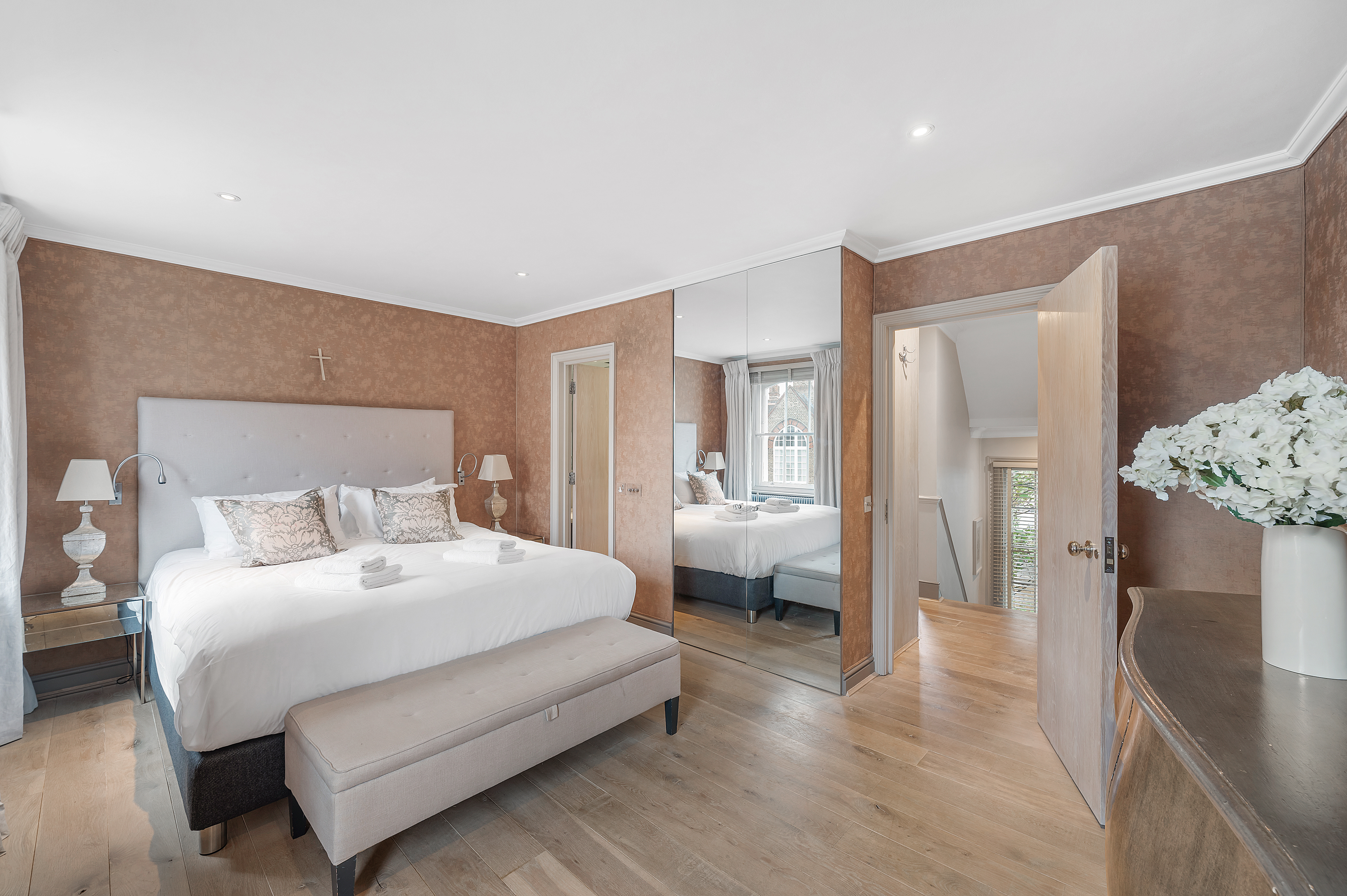 Impeccable taste and a keen eye for interiors come naturally to the owners of Walton Street. They also lead the design behind the magnificent Castello di Reschio estate in Umbria, Italy. The heart of the home is the light-bathed sitting room, dining area and adjoining kitchen. A private garden is accessed down the stairs to the rear of the home, and the bedrooms and bathrooms are spread over a further three levels. The master bedroom has a UK super king (6 ft wide) bed on the third floor. The other bedroom has a UK super king (6 ft wide), and there is also a study with a sofa bed to accommodate an extra adult or 2 x children. Both bedrooms are fitted with portable air conditioners.